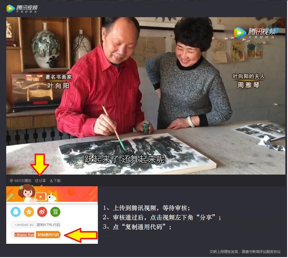 二、復(fù)制視頻左下角的分享-->“通用代碼”;