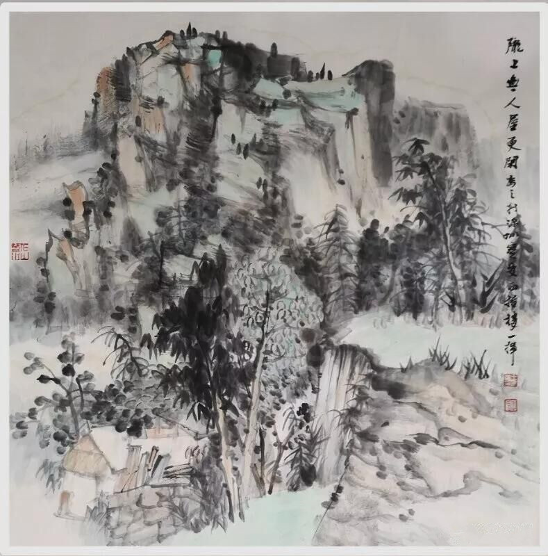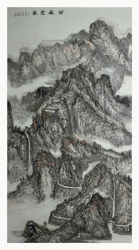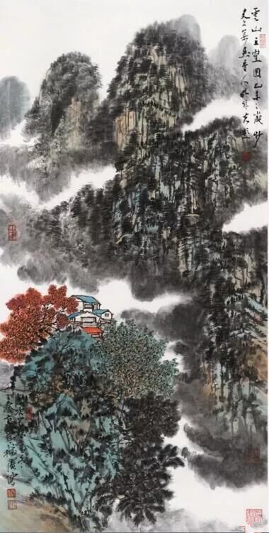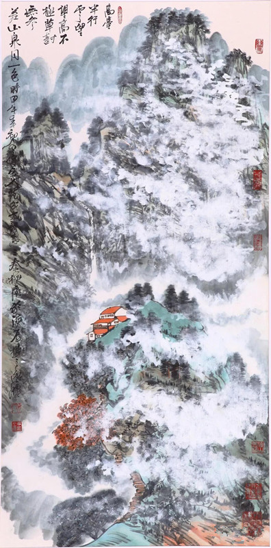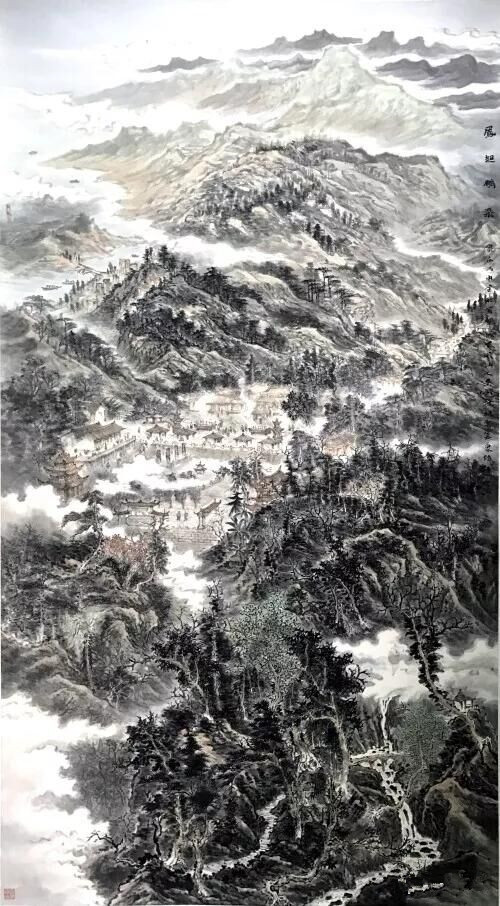 《高臺半行雲(yún)》 國畫水墨 138x68cm
