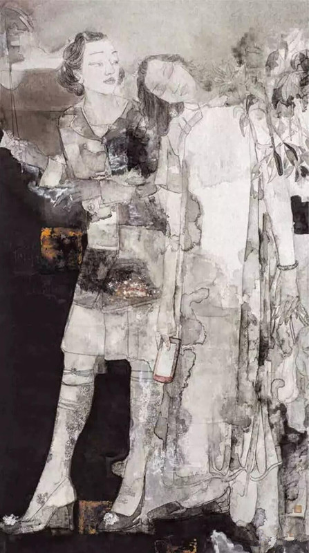 《素顏?私語》 紙本水墨礦物色 168×68cm