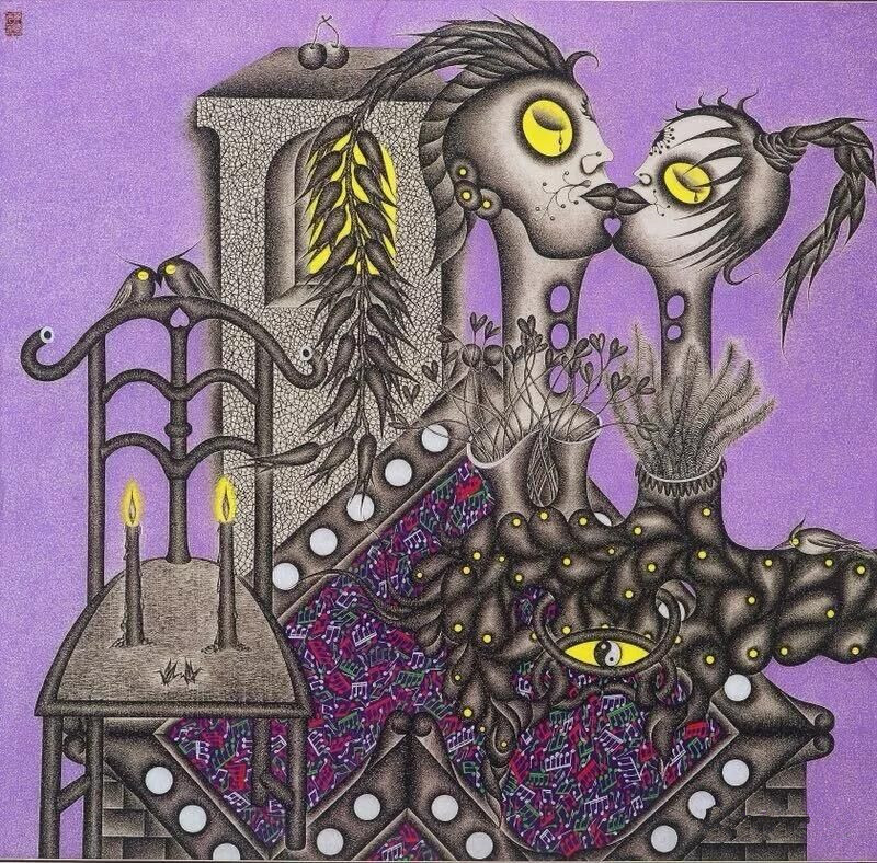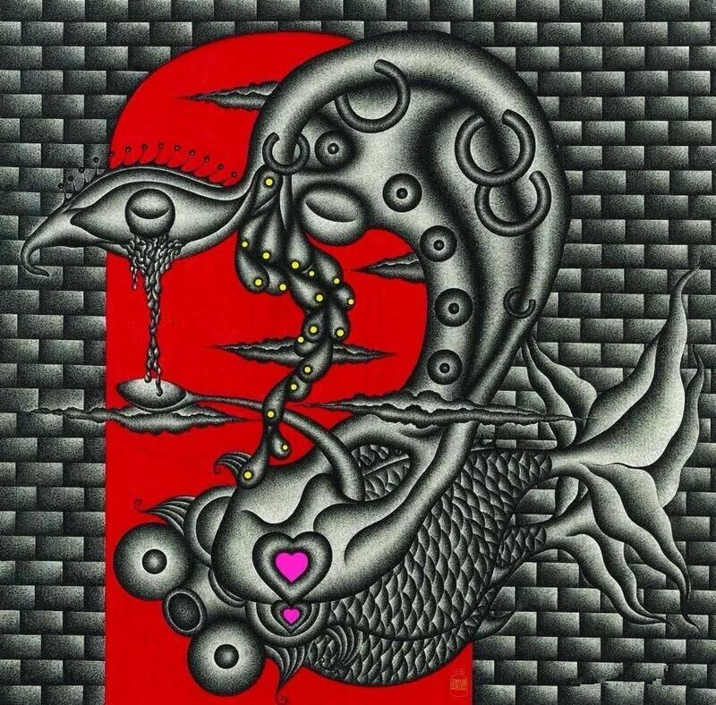 《凡高的耳朵》 紙本彩墨 100x100cm