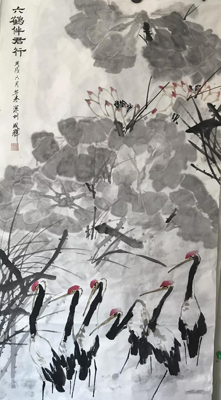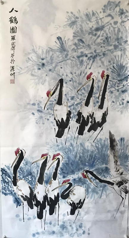 《六鶴伴君圖》 國畫花鳥 196X97cm
