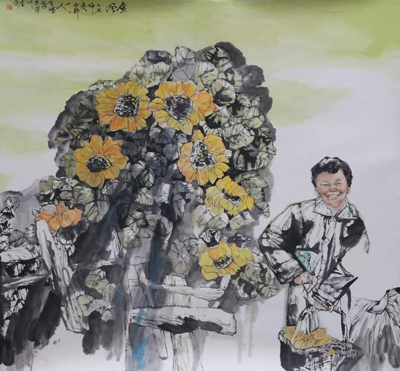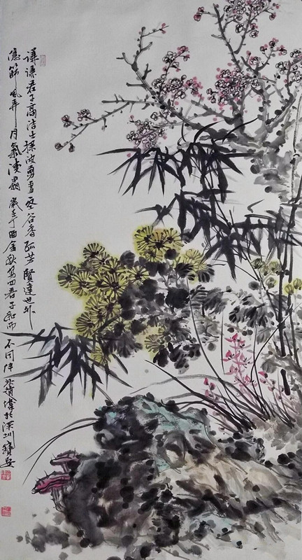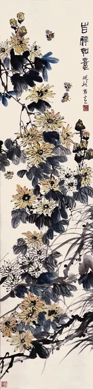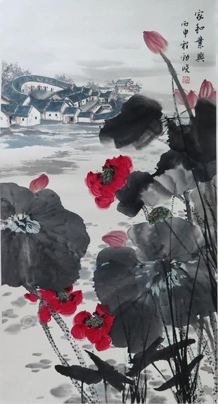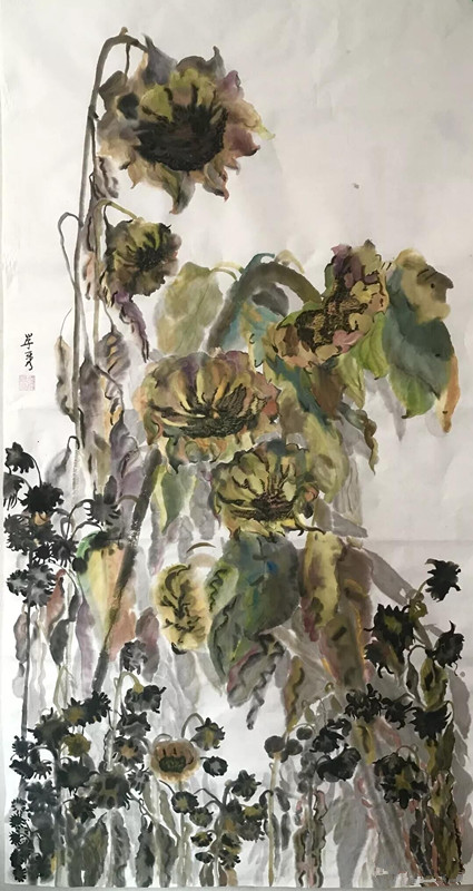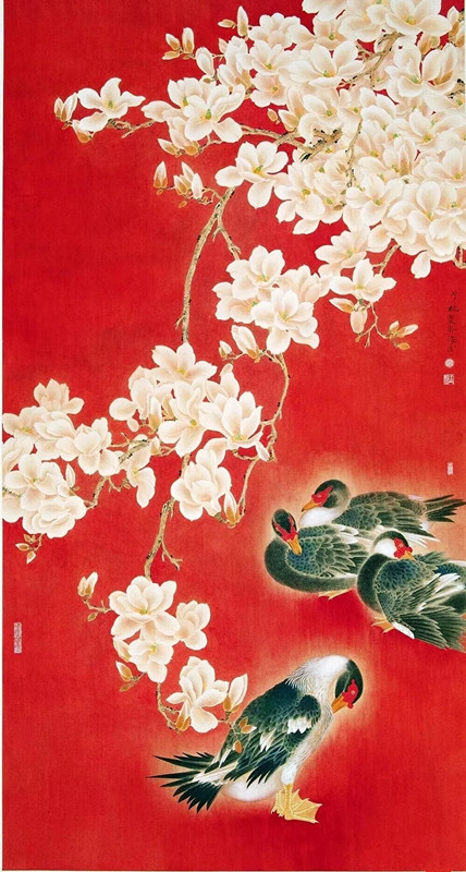 《家和業(yè)興》 寫意花鳥 138X68cm