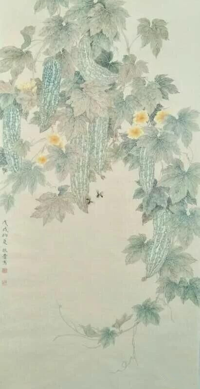 《苦瓜藤下》 國畫花鳥 138X68cm