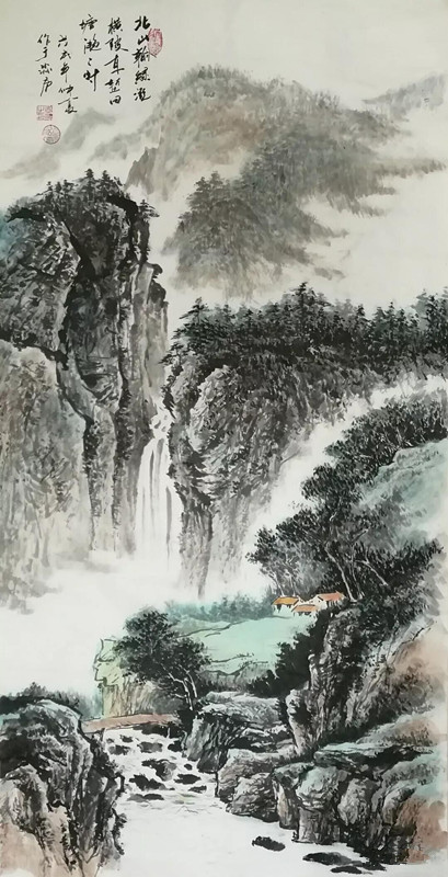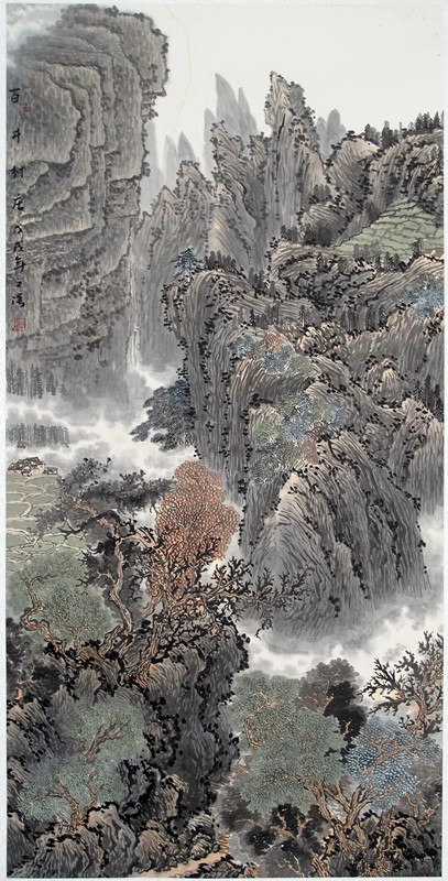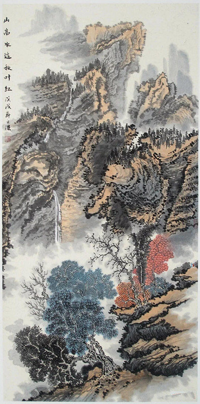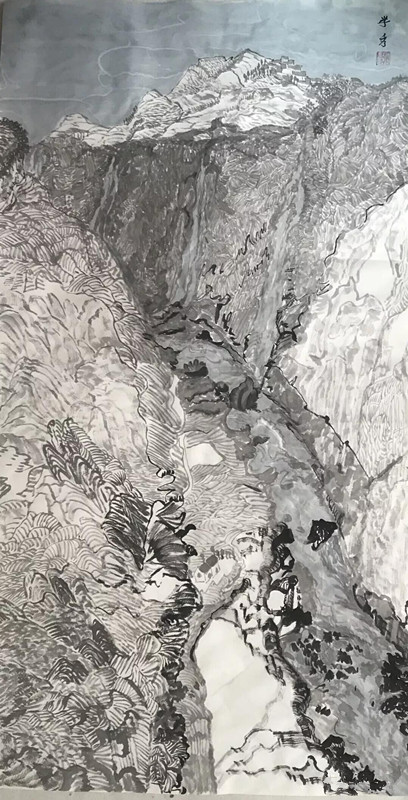 《山高水遠(yuǎn)》 國畫山水 168X68cm