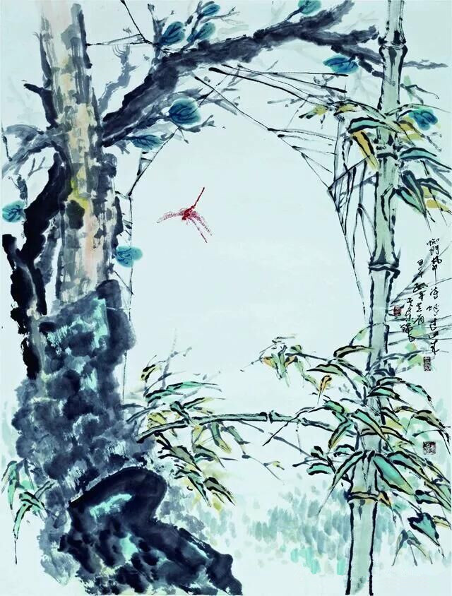 觀東輝作品也有類似的感受,如“農家樂、菜根香”“六祖慧能行禪圖” “夏居夜事”“蛛 窗蜓影” “老竹新芽 “青蟹圖”等作品 幅幅獨具匠心,靈苗奇顯,畫中充滿生命輪回、生機勃發(fā)、生活情趣的書卷想象力,又具有釋道儒文人畫精神,同時也有西班牙繪畫大師”達利”的超現實主義和當代行為藝術畫風的特征,令人心存喜悅,百看不厭,啟發(fā)人智,??闯P隆.嬛械纳绞瘶淠镜葎?chuàng)新充分利用了毛筆的特點,點、線、面、水、墨、色:干、濕、濃、談、枯、焦充分利用。畫面清新超脫、筆水互溶、色墨交匯、雅意盎然,在廣泛吸取傳統筆墨精華的基礎上大膽創(chuàng)新,有所突破。